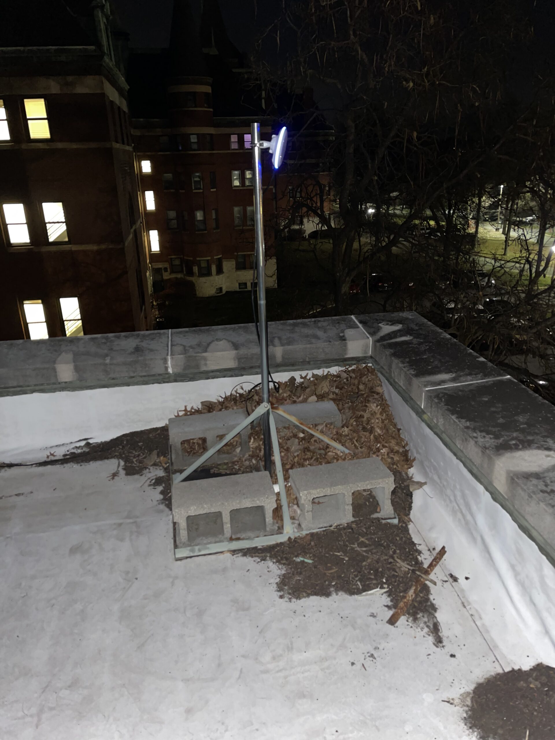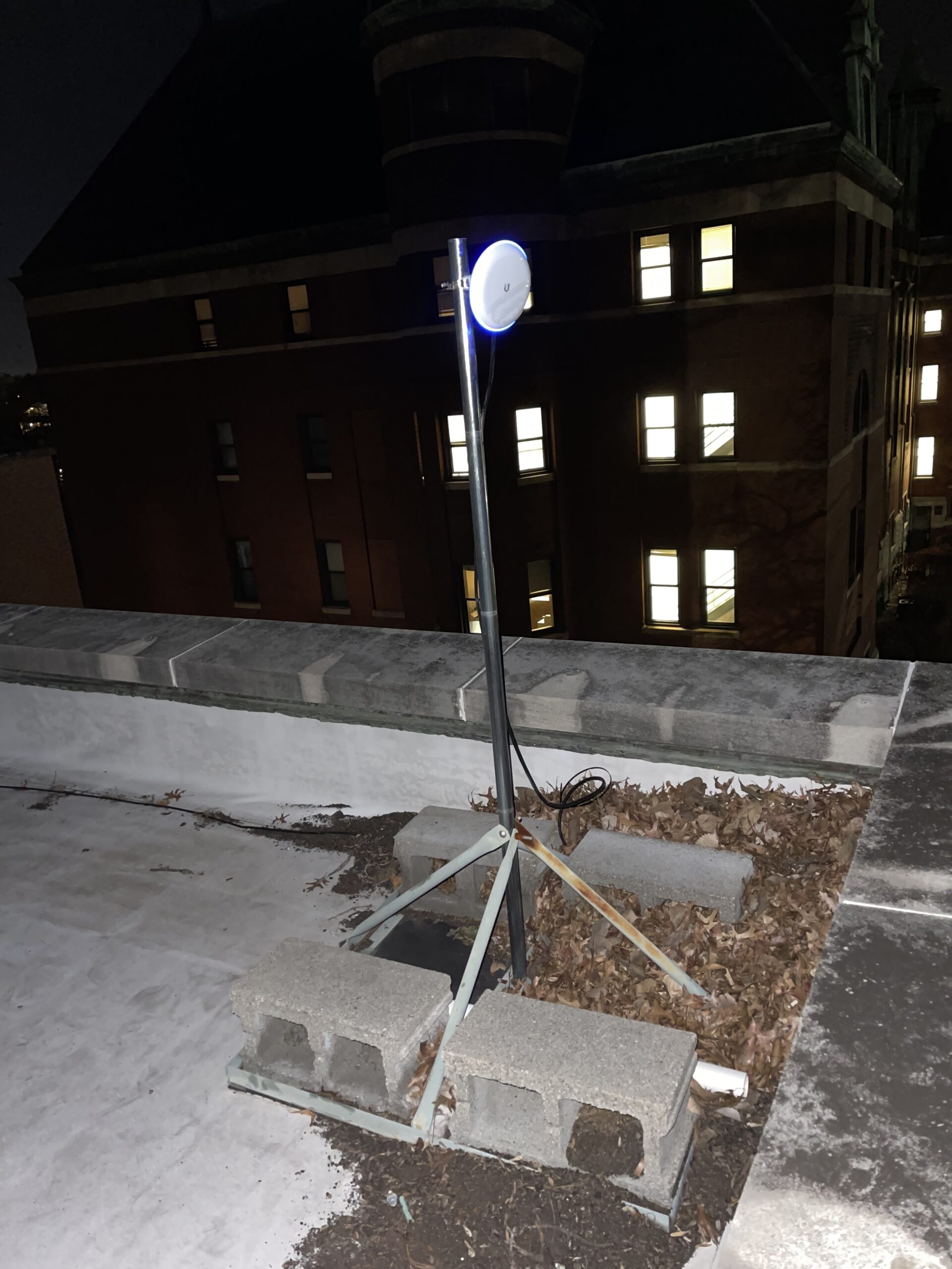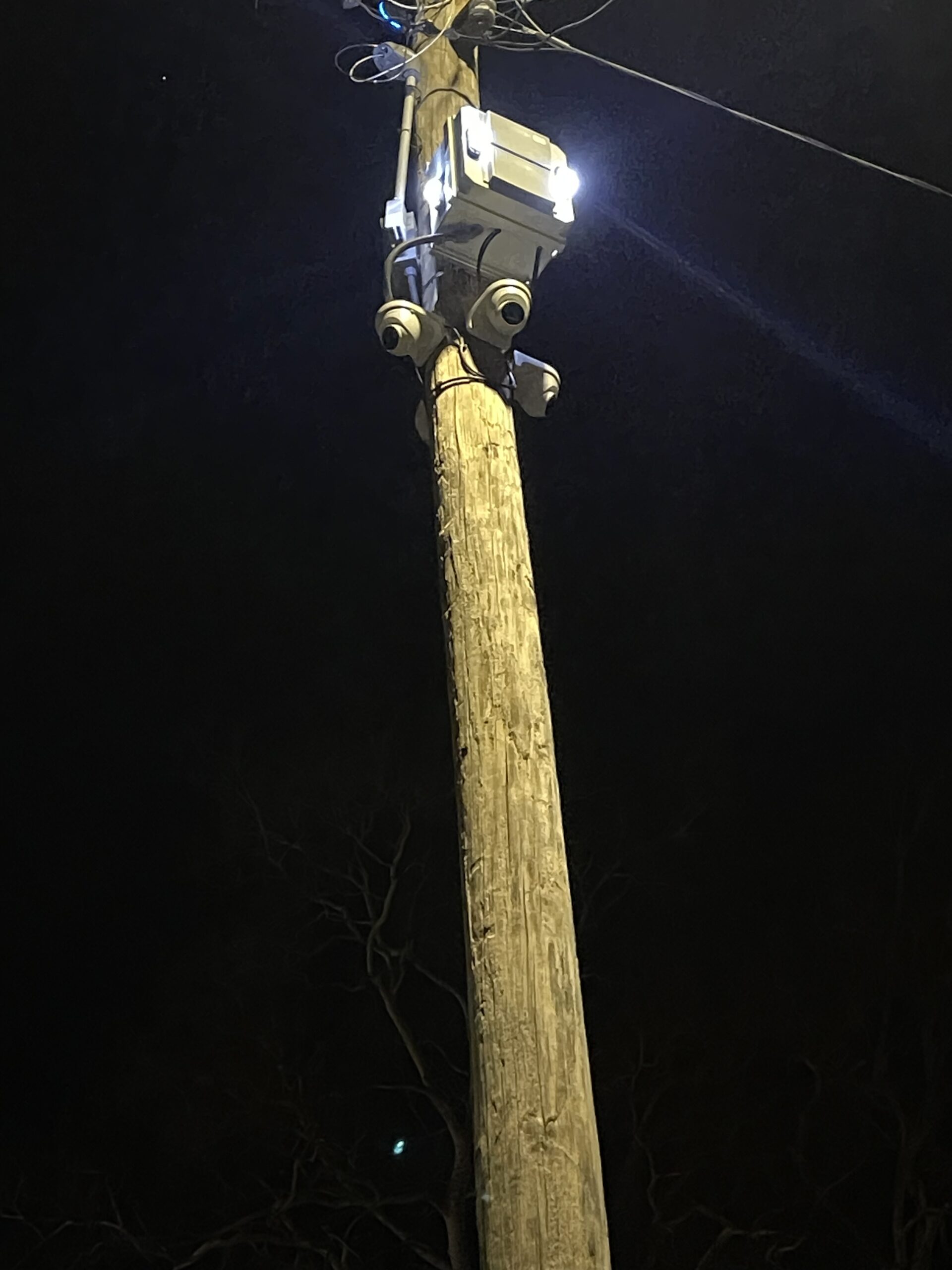 The above pictures are of a custom designed camera solution for a building. The company already had a camera NVR server in place. We installed a wireless point to point bridge, outside rated electrical box, and four cameras. These were IP based cameras and was tied directly into the electrical grid to avoid power loss. This was the most important factor as this area needed cameras due to theft and breakins on employees vehicles.